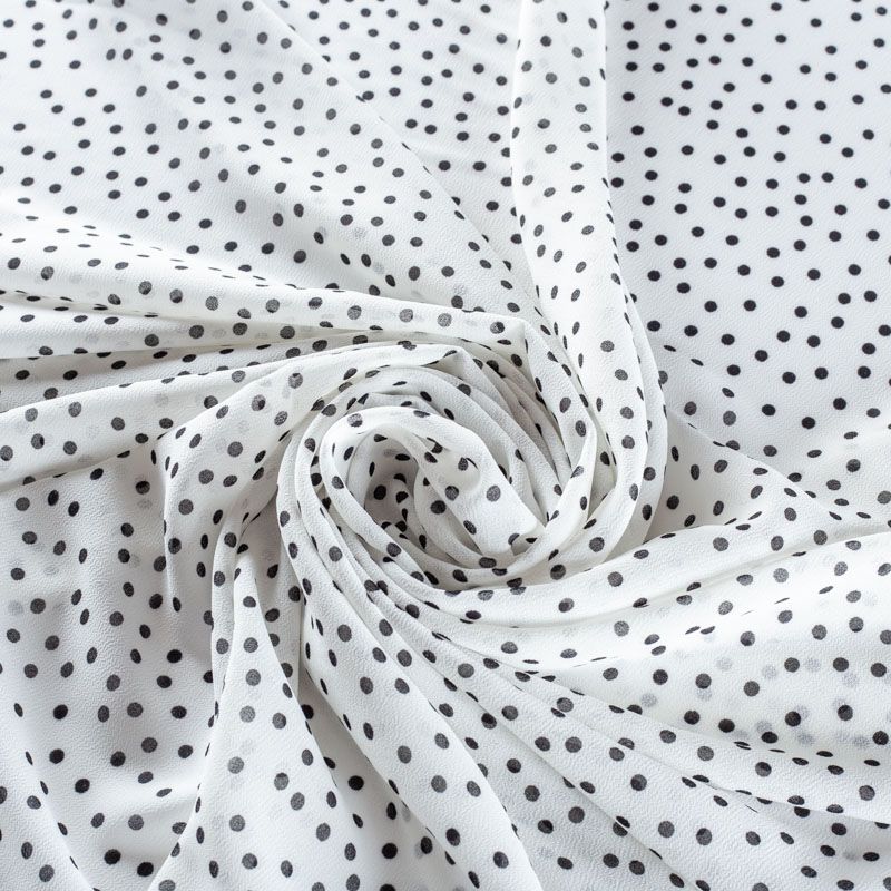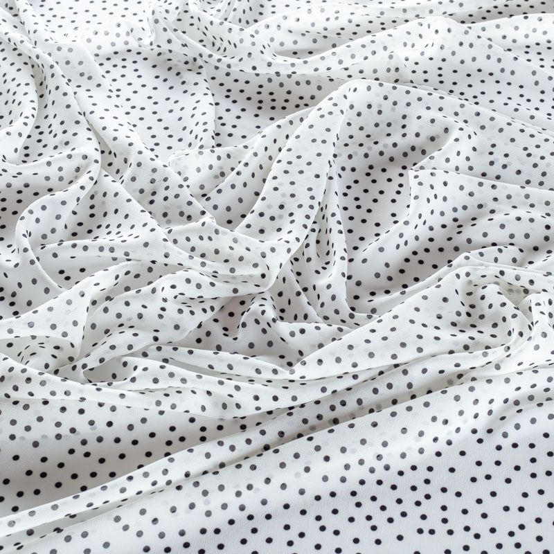 Легкий, воздушный, мягкий и нежный креп-шифон, прекрасно драпируется, приятен к телу, полупрозрачный, может потребоваться подклад. Поверхность матовая, без блеска, фактурная. Идеален для нежных платьев летящих силуэтов, топов, туник, блузок, юбок с роскошными драпировками и воланами.