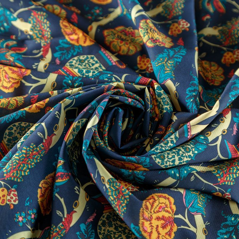 Креп-шифон 027-08366 темно-синий принтованный в Москве