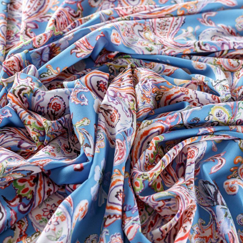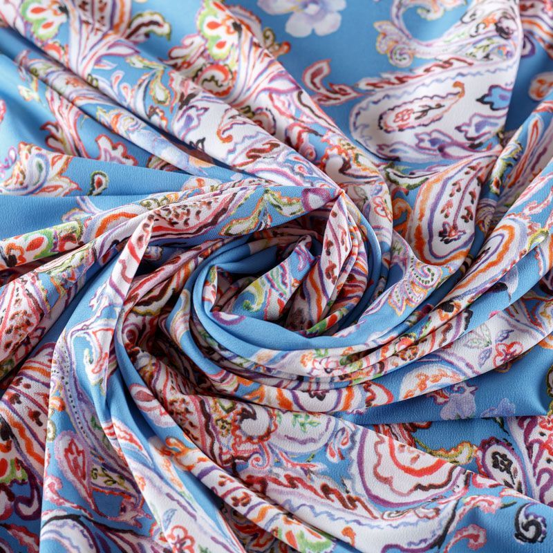 Креп-шифон 027-08417 голубой принтованный в Москве