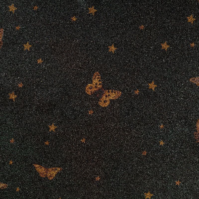 Шелковый креп-шифон черного цвета, полностью расшитый черно-золотой люрексовой нитью с фантазийным принтом. Не просвечивает, тянется, шикарно смотрится в драпировке. Подойдет для пошива платья, комбинезона, топа, блузки, свободных брюк.