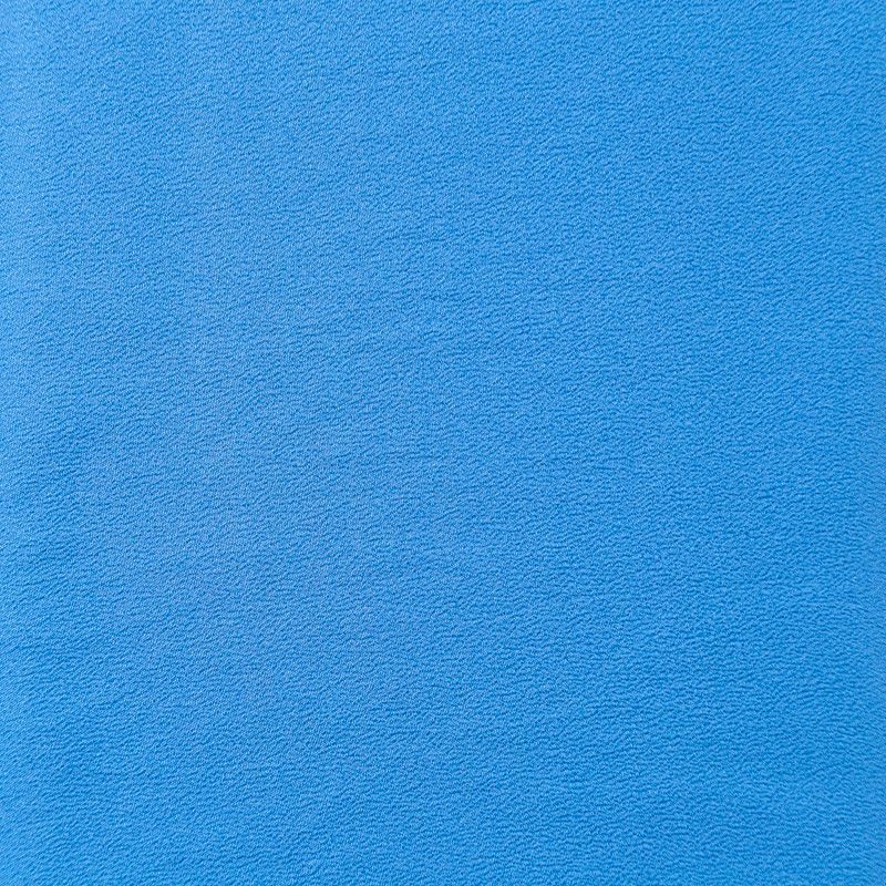 Итальянский натуральный шелковый крепдешин в голубом оттенке, фактурный, легкий и струящийся, слегка просвечивает, отлично драпируется, тянется за счет эластана в составе. Идеально подойдет для пошива платьев и сарафанов расклешенных моделей, с воланами, летящих юбок, топов, блузки, юбки, широких брюк, костюма в пижамном стиле.