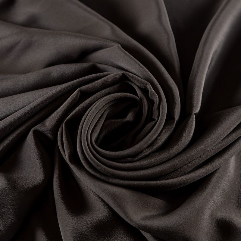 Итальянский натуральный шелковый крепдешин в темном оттенке, фактурный, легкий и струящийся, слегка просвечивает, отлично драпируется. Идеально подойдет для пошива платьев и сарафанов расклешенных моделей, с воланами, летящих юбок, топов, блузки, юбки, широких брюк, костюма в пижамном стиле.