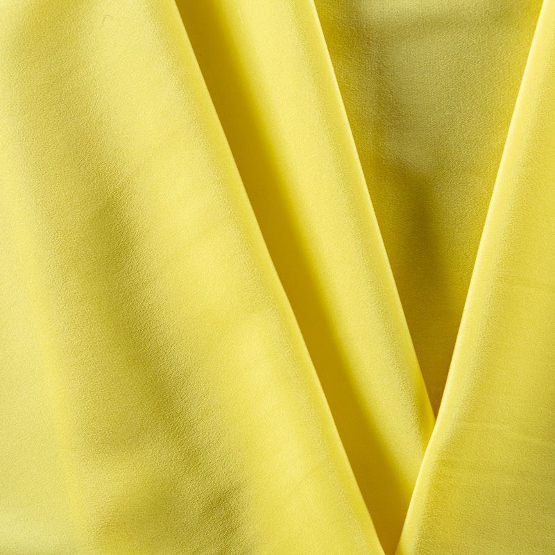 Итальянский натуральный шелковый крепдешин в желтом оттенке, фактурный, легкий и струящийся, слегка просвечивает, отлично драпируется. Идеально подойдет для пошива платьев и сарафанов расклешенных моделей, с воланами, летящих юбок, топов, блузки, юбки, широких брюк, костюма в пижамном стиле.