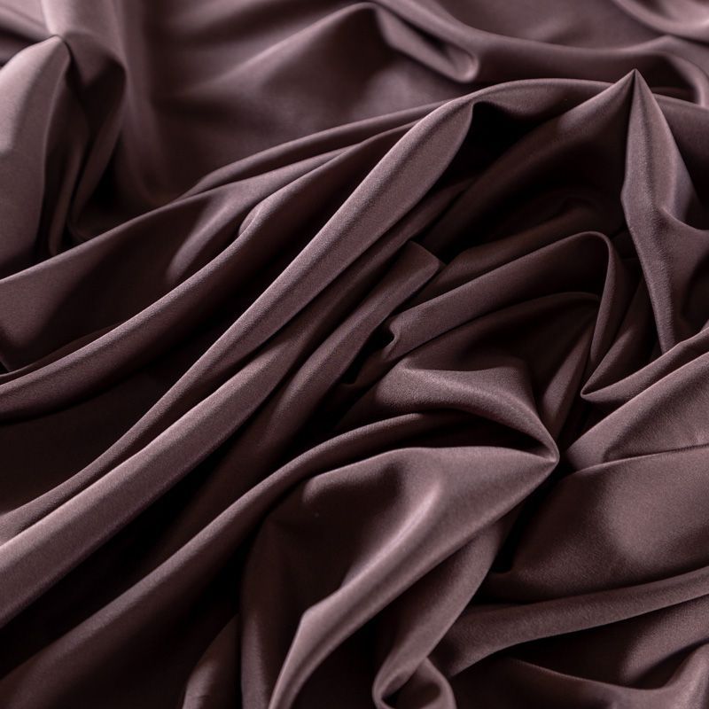 Итальянский натуральный шелковый крепдешин в шоколадном оттенке, фактурный, легкий и струящийся, слегка просвечивает, отлично драпируется., тянется за счет эластана в составе. Идеально подойдет для пошива платьев и сарафанов расклешенных моделей, с воланами, летящих юбок, топов, блузки, юбки, широких брюк, костюма в пижамном стиле.