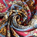 Итальянский натуральный крепдешин в вишневом оттенке с анаималистическим принтом, тонкий, не прозрачный, отлично драпируется, легкий и струящийся. Идеально подойдет для пошива платьев и сарафанов расклешенных моделей, с воланами, летящих юбок, топов, блузки, юбки, широких брюк, костюма в пижамном стиле.