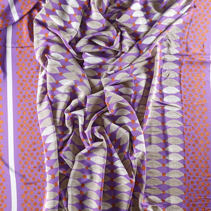 Крепдешин натуральный К01-377 лавандовый принтованный в Москве