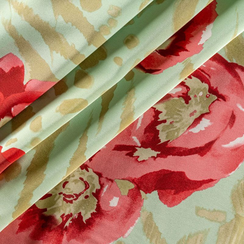 Крепдешин натуральный К01-653 фисташковый принтованный