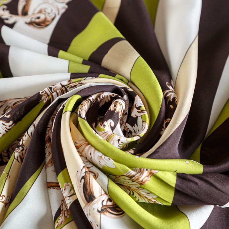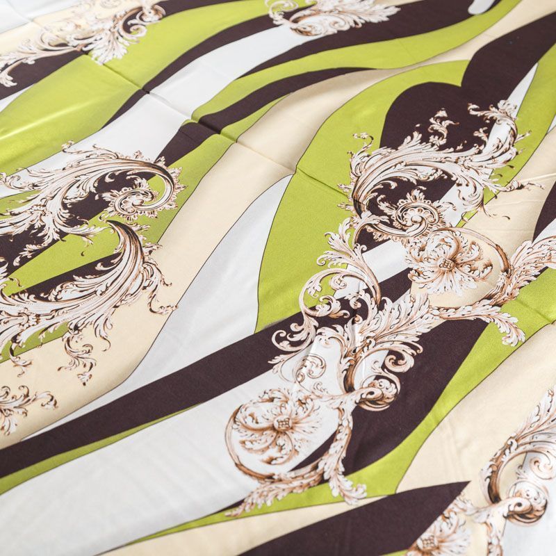 Крепдешин натуральный К01-763 молочно-лаймовый принтованный в Москве