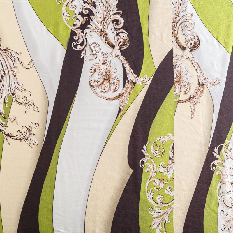 Крепдешин натуральный К01-763 молочно-лаймовый принтованный