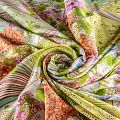 Крепдешин натуральный К06-0095 салатовый принтованный