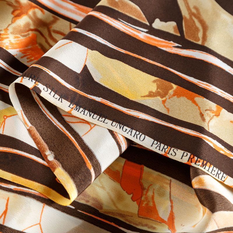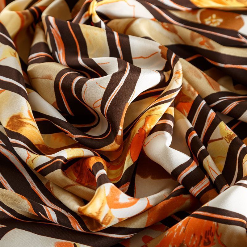 Крепдешин натуральный К15-347 коричневый принтованный в Москве