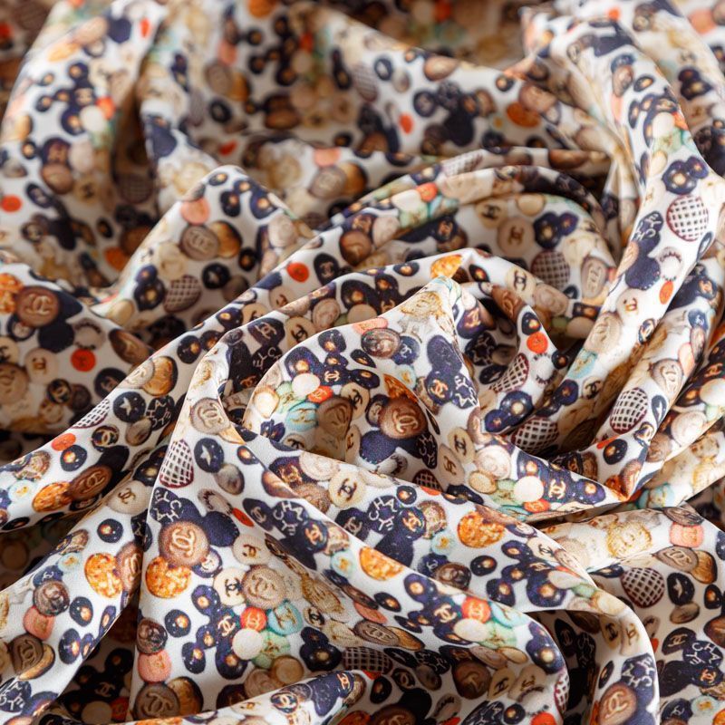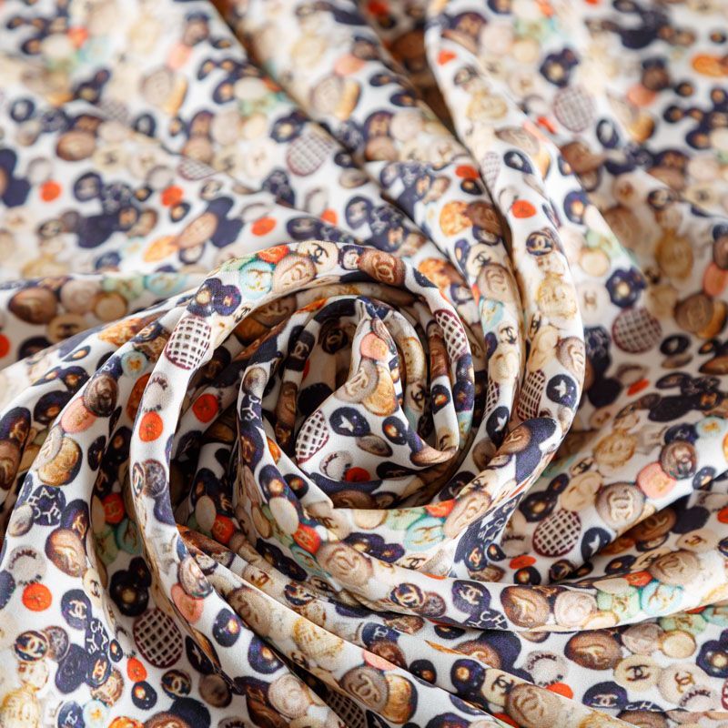 Крепдешин натуральный К18-073 молочный принтованный в Москве