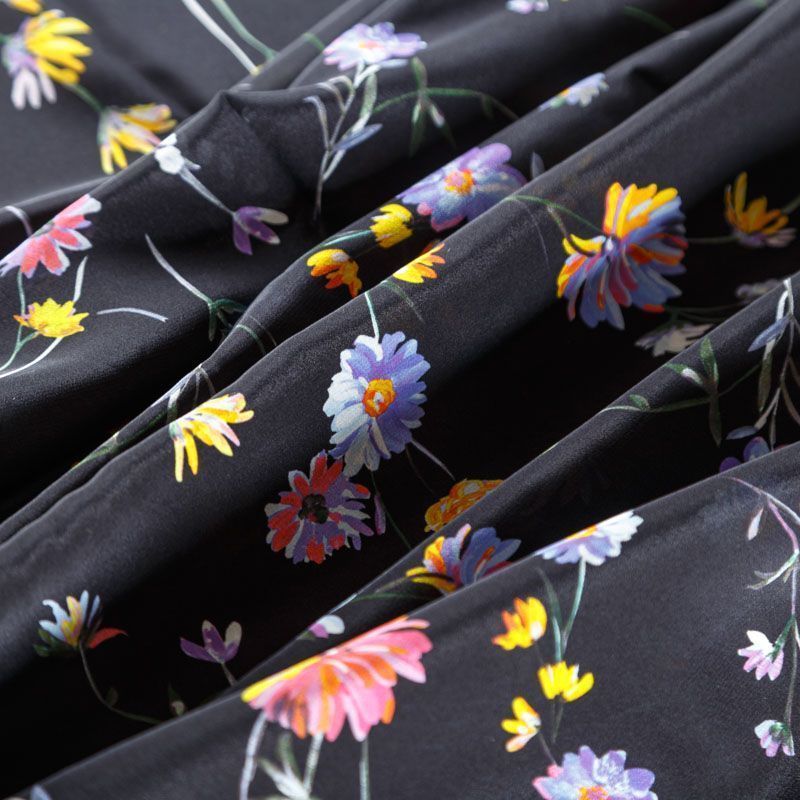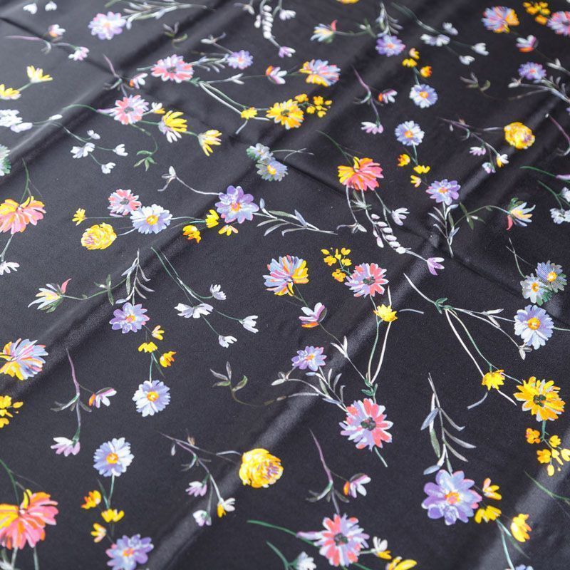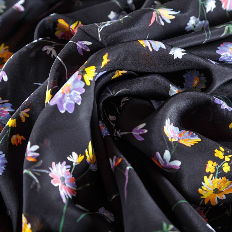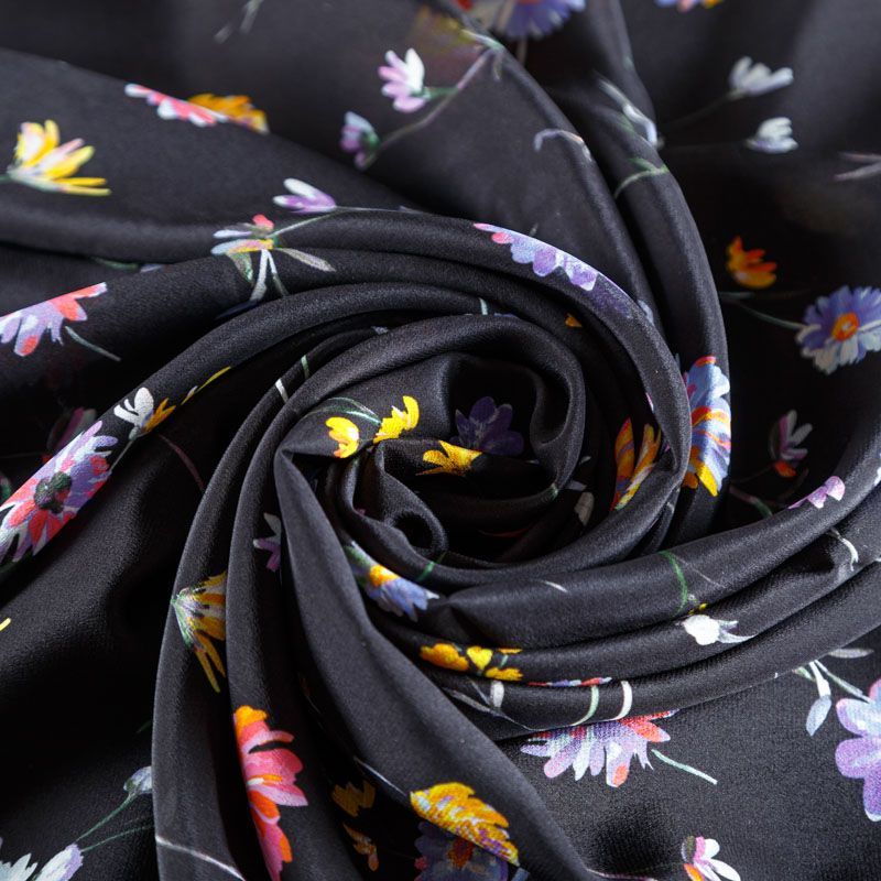 Крепдешин натуральный К24-042 черный принтованный в Москве