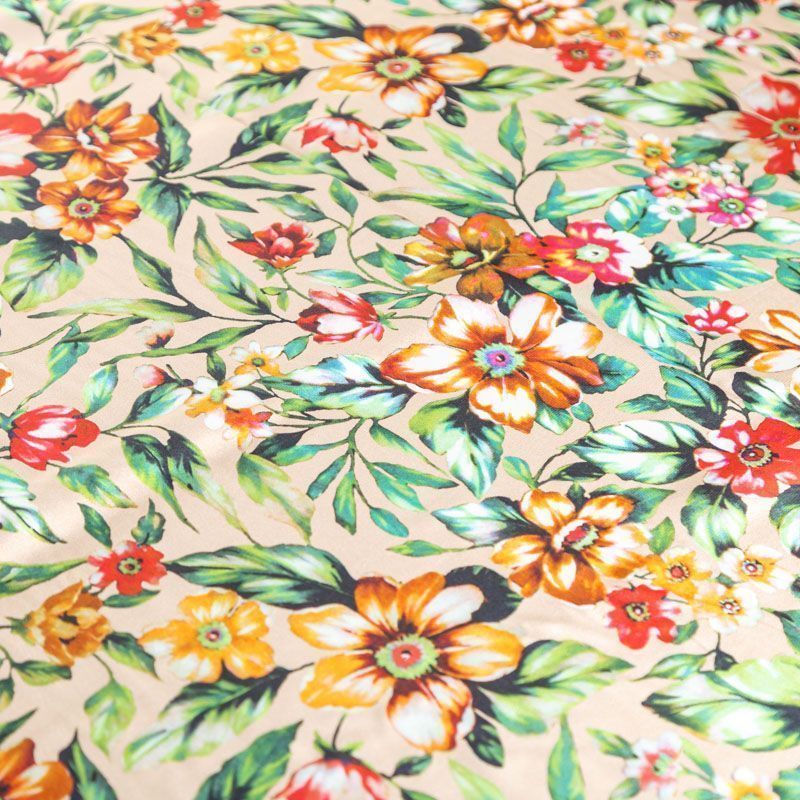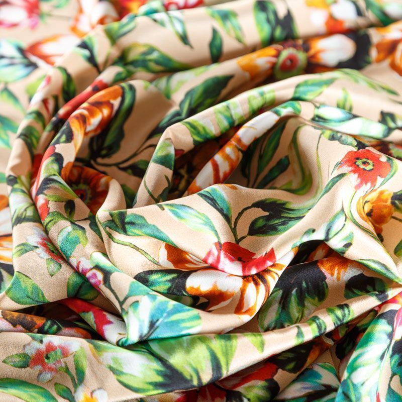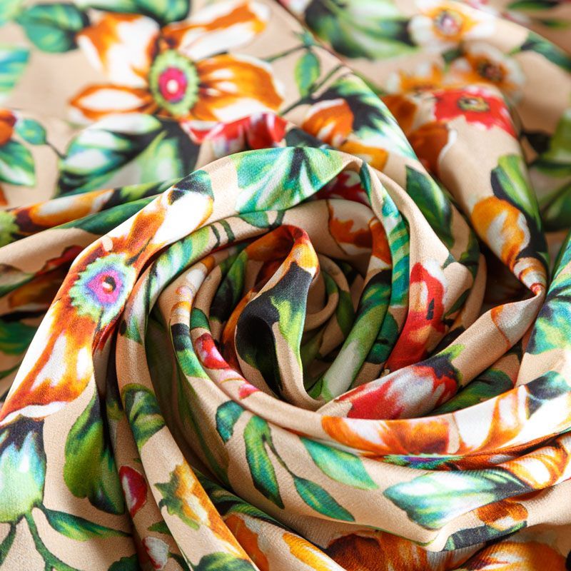 Крепдешин натуральный К27-037 бежевый принтованный в Москве