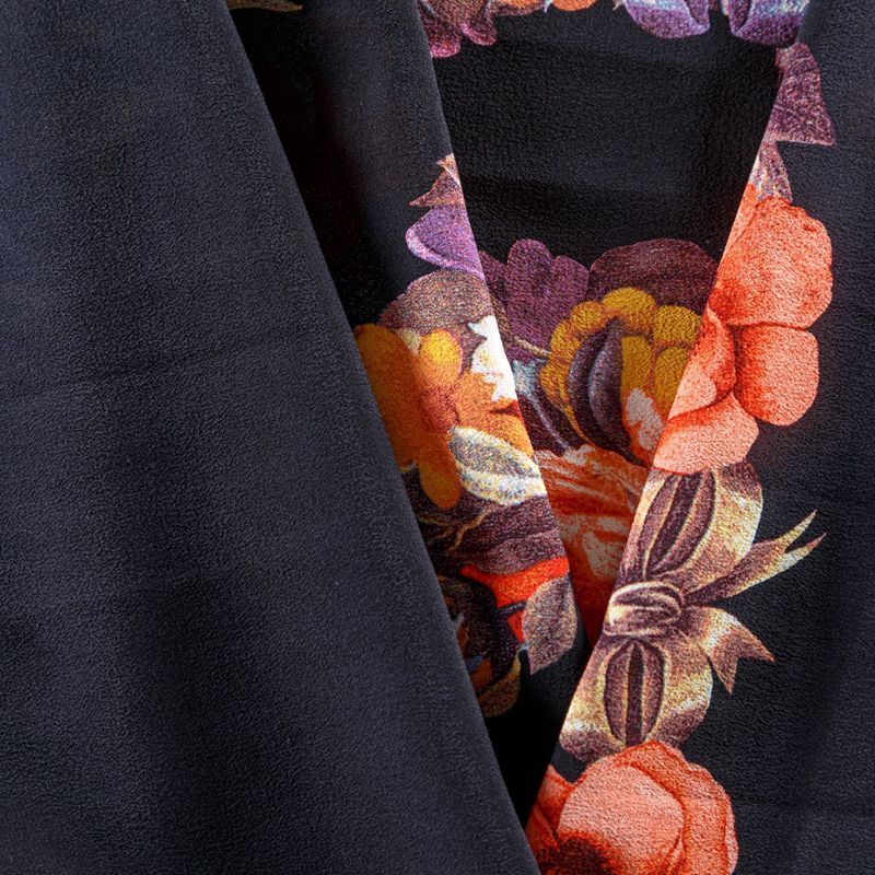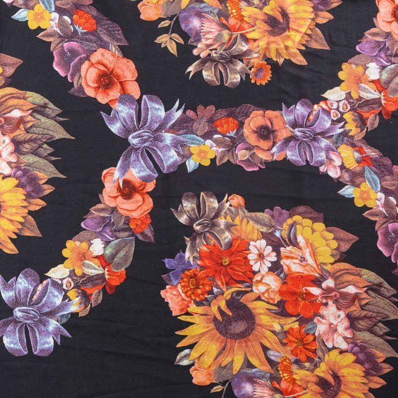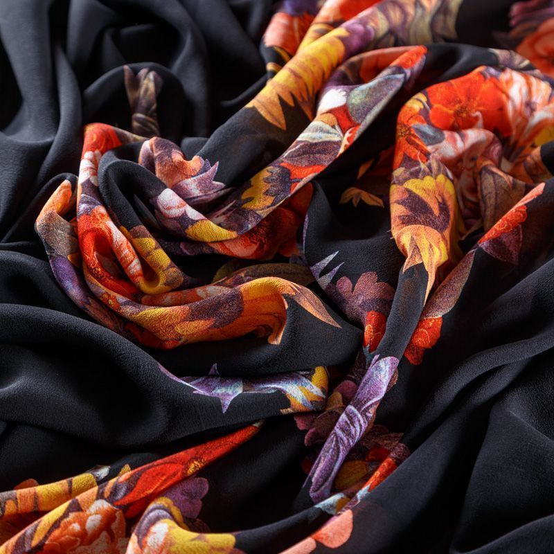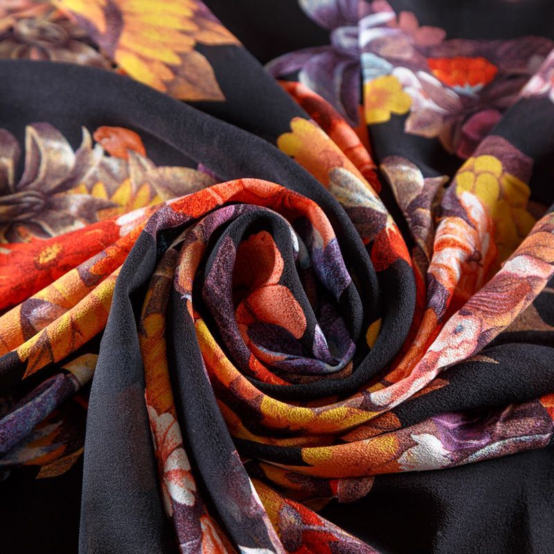 Крепдешин натуральный К29-785 черный принтованный в Москве