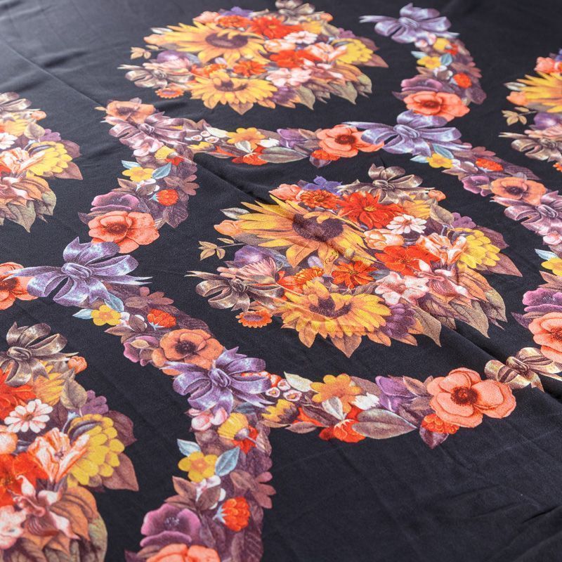 Крепдешин натуральный К29-785 черный принтованный