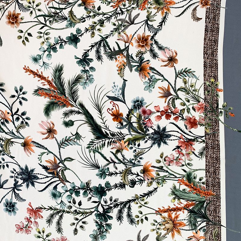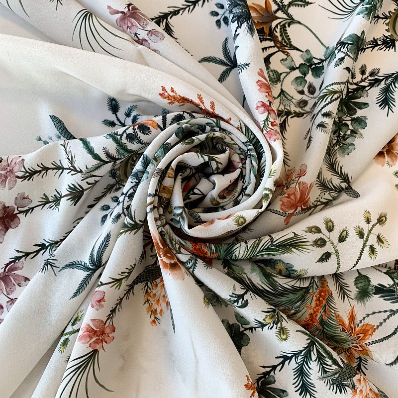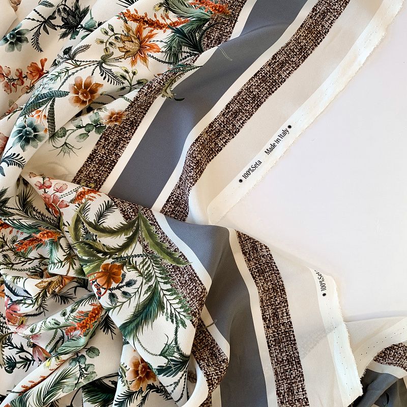 Крепдешин натуральный К32-237 бежево-серый принтованный в Москве