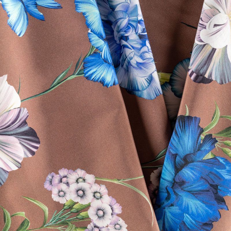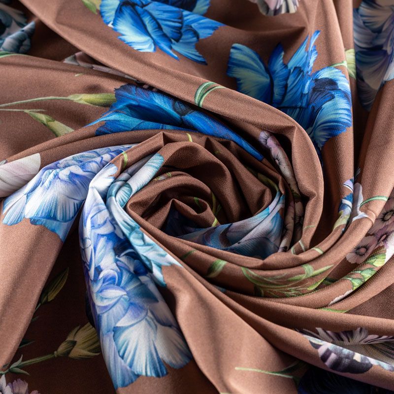 Крепдешин натуральный К32-244 молочный шоколад принтованный