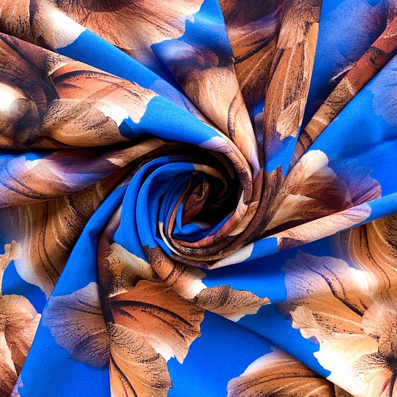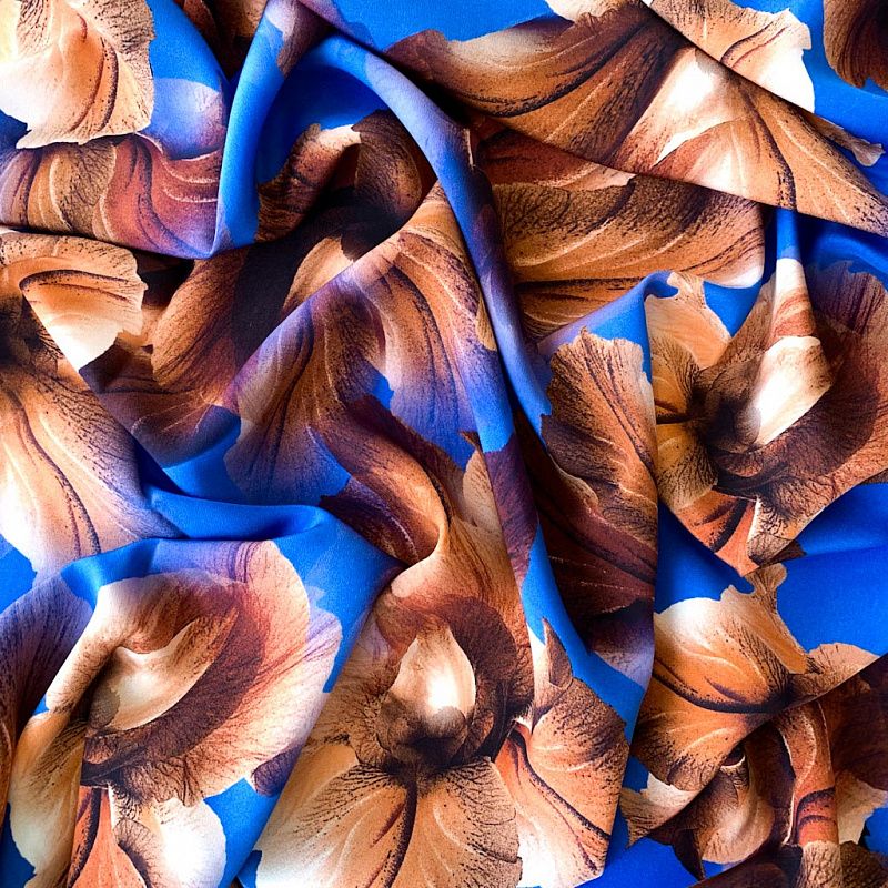 Крепдешин натуральный К32-373 лазурно-синий принтованный в Москве