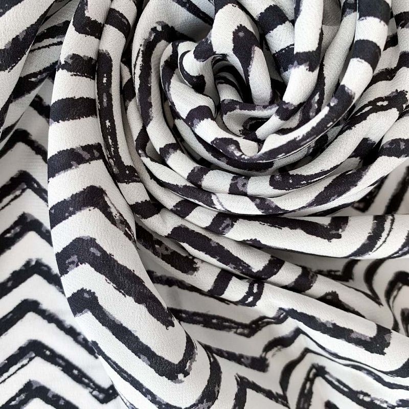 Крепдешин натуральный К32-378 молочный принтованный в Москве