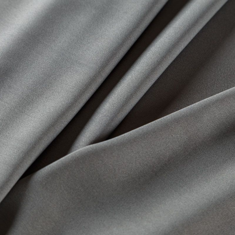 Крепдешин серого оттенка, тонкий, легкий, фактурный, приятный на ощупь. Очень пластичный, тянется за счет эластана в составе, прекрасно драпируется и струится. Ткань слегка просвечивает, можно использовать подклад. Идеально будет смотреться в платье, юбке, тунике, рубашке или блузке.