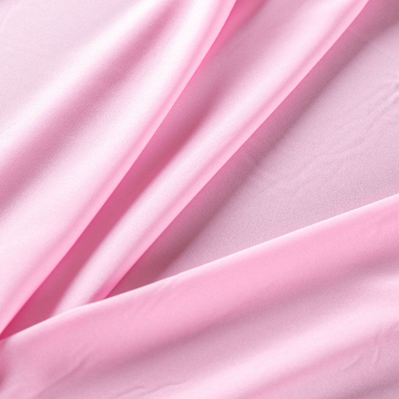 Крепдешин нежно-розового оттенка, тонкий, легкий, фактурный, приятный на ощупь. Очень пластичный, тянется за счет эластана в составе, прекрасно драпируется и струится. Ткань слегка просвечивает, можно использовать подклад. Идеально будет смотреться в платье, юбке, тунике, рубашке или блузке.