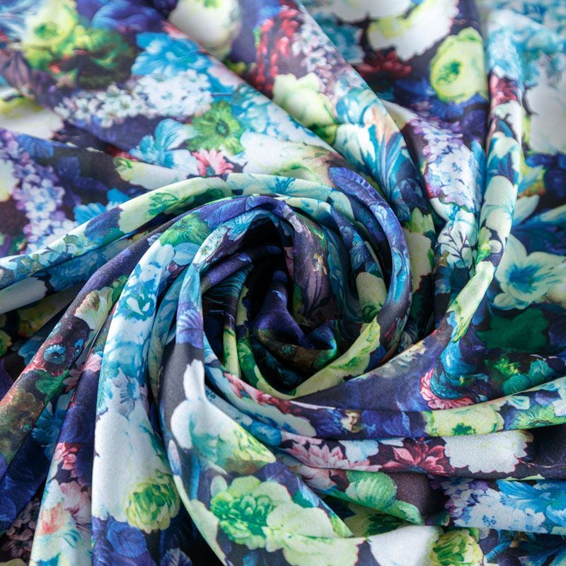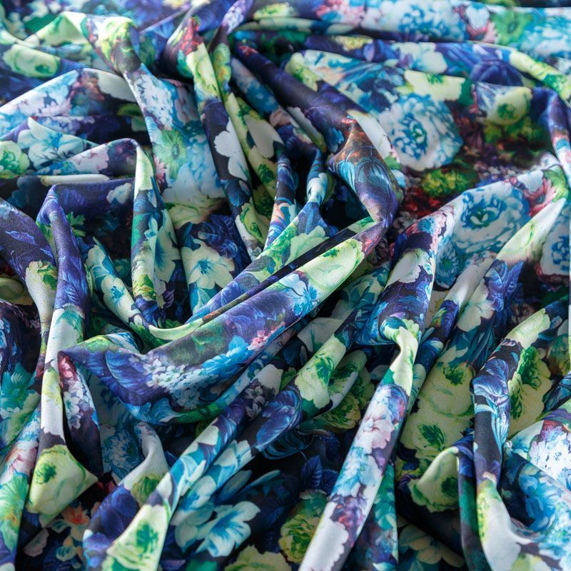 Крепдешин синтетический 029-08355 темно-синий принтованный в Москве
