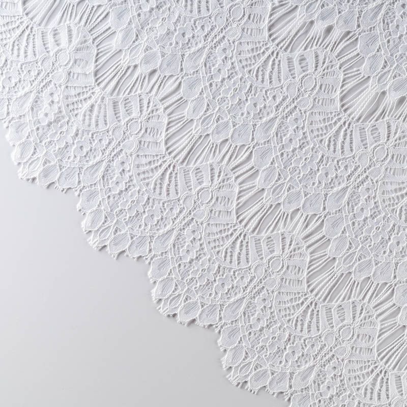 Ткань сквозной фактуры, она не имеет какой-либо тканной или сетчатой основы, а полностью соткана из нитей, создающий особенный рисунок, в целом, состоящий из небольшой ширины кружевных полосок, соединенных между собой тонкими нитями-ресничками, расположенными на одинаковом расстоянии между собой. Кружево можно использовать при пошиве самостоятельных изделий на подкладе (платья, топа, юбки, брюк), а также оно незаменимо в качестве отделки за счет фигурных фестонов.