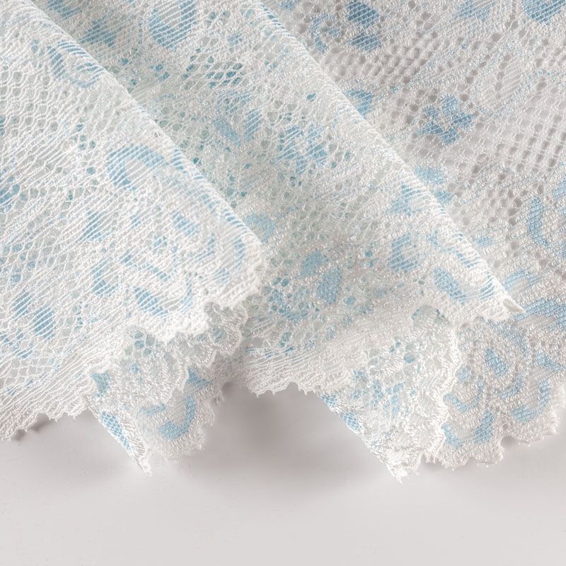 Эластичное кружево сочетает в себе мягкость, прочность и красоту, благодаря своей упругости оно долго не теряет первоначальную форму. Используется для пошива нижнего белья, а так же применяется как отделочный декор в одежде.