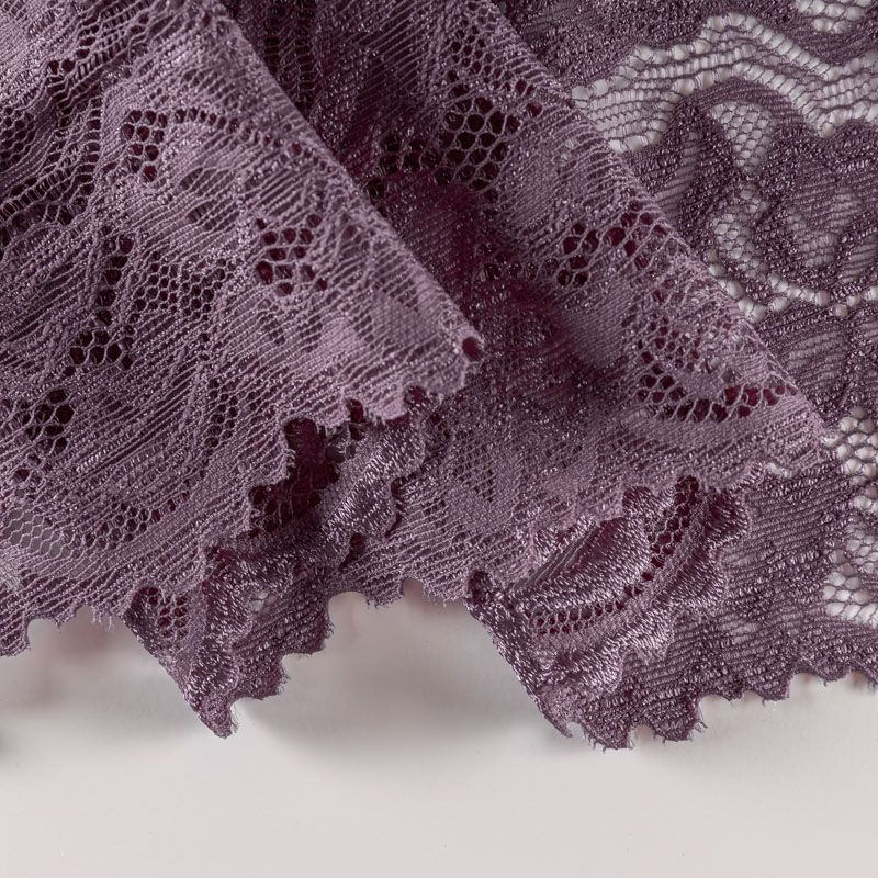 Эластичное кружево сочетает в себе мягкость, прочность и красоту, благодаря своей упругости оно долго не теряет первоначальную форму. Используется для пошива нижнего белья, а так же применяется как отделочный декор в одежде.