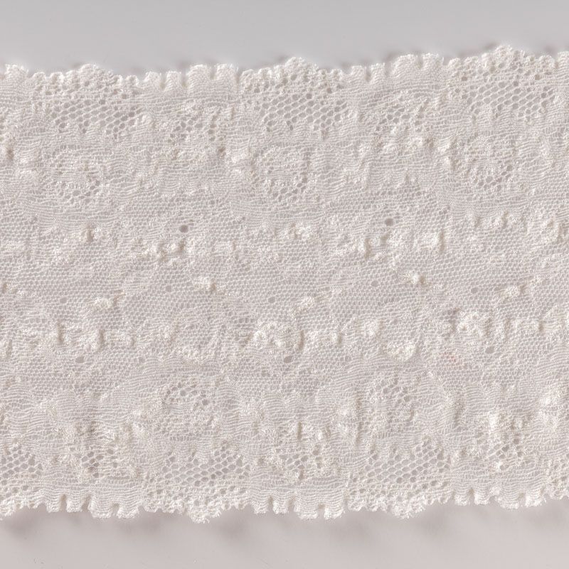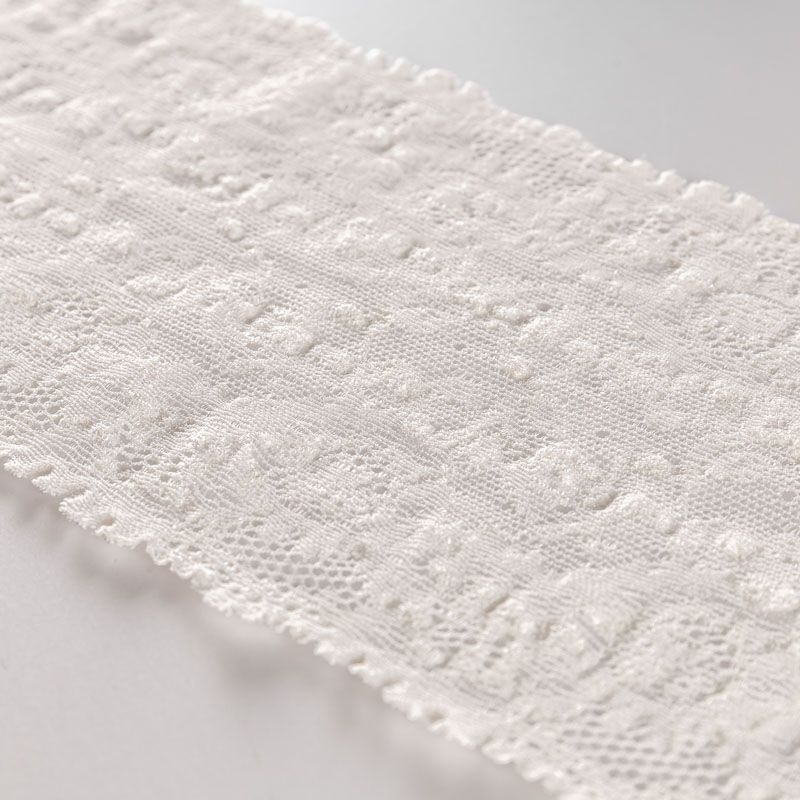Эластичное кружево сочетает в себе мягкость, прочность и красоту, благодаря своей упругости оно долго не теряет первоначальную форму. Используется для пошива нижнего белья, а так же применяется как отделочный декор в одежде.