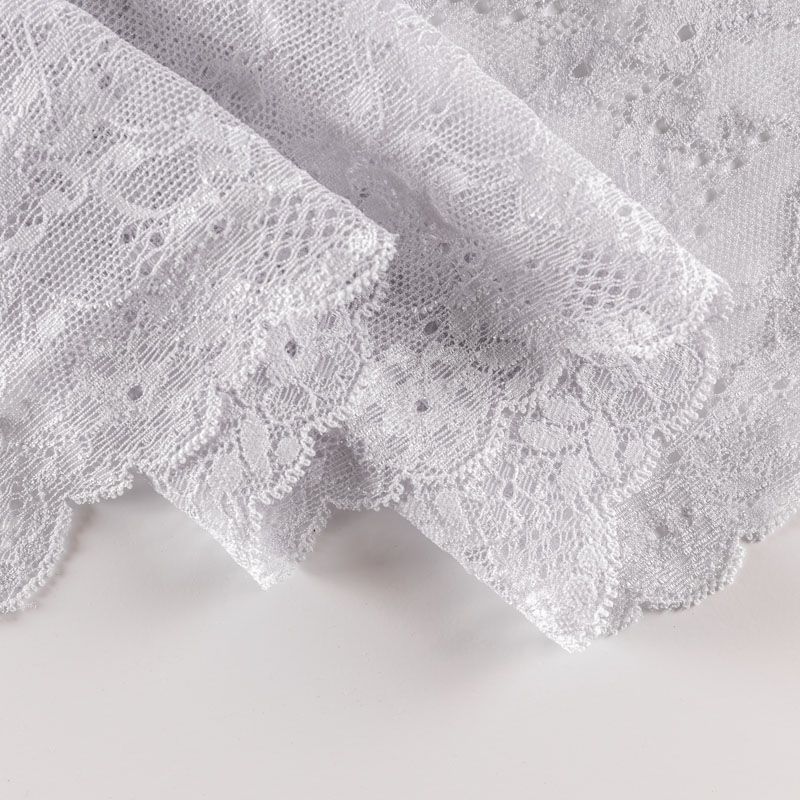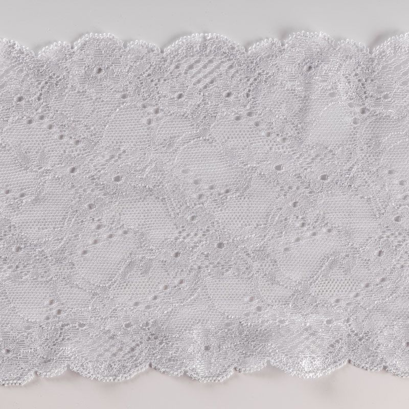 Эластичное кружево сочетает в себе мягкость, прочность и красоту, благодаря своей упругости оно долго не теряет первоначальную форму. Используется для пошива нижнего белья, а так же применяется как отделочный декор в одежде.
