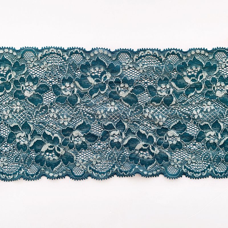 Эластичное кружево сочетает в себе мягкость, прочность и красоту, благодаря своей упругости оно долго не теряет первоначальную форму. Используется для пошива нижнего белья, а так же применяется как отделочный декор в одежде.