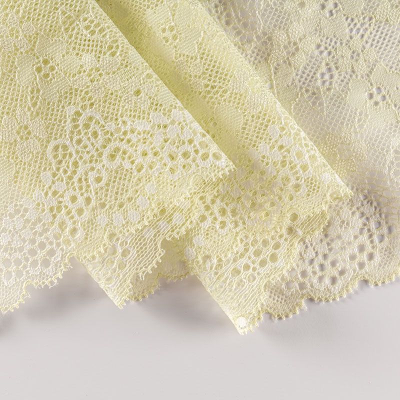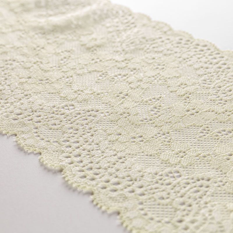 Эластичное кружево сочетает в себе мягкость, прочность и красоту, благодаря своей упругости оно долго не теряет первоначальную форму. Используется для пошива нижнего белья, а так же применяется как отделочный декор в одежде.