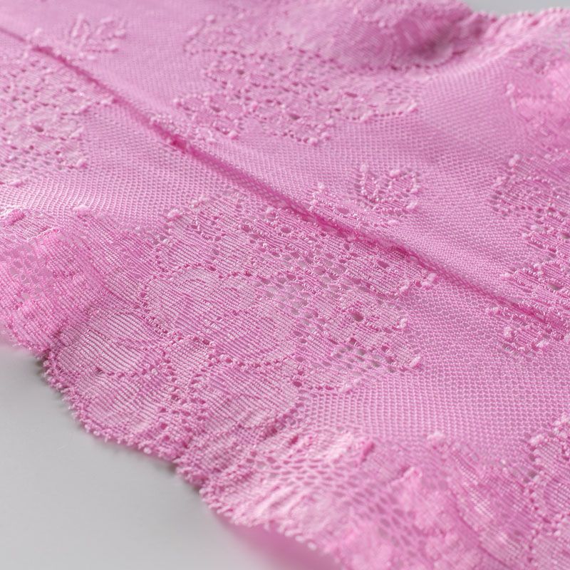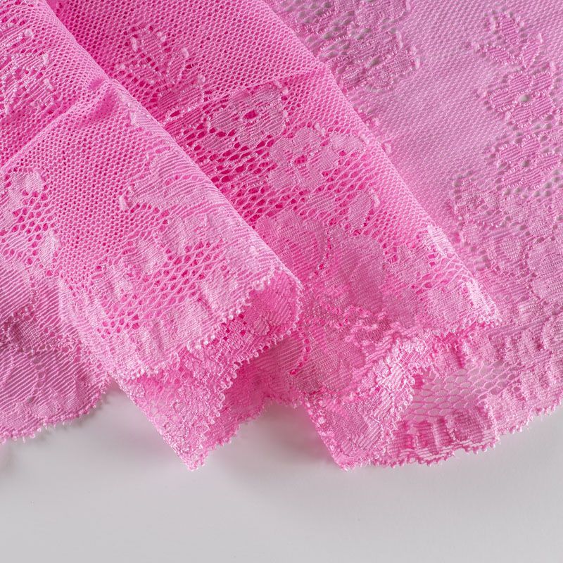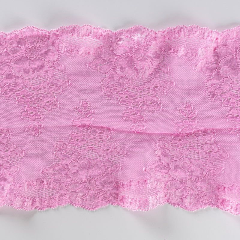 Эластичное кружево сочетает в себе мягкость, прочность и красоту, благодаря своей упругости оно долго не теряет первоначальную форму. Используется для пошива нижнего белья, а так же применяется как отделочный декор в одежде.