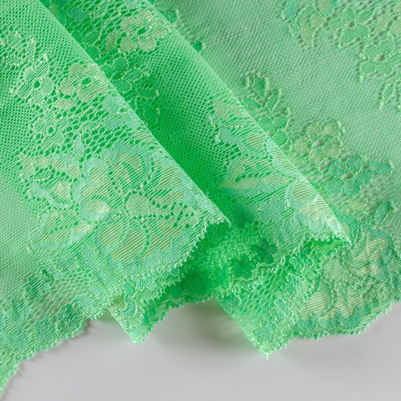 Эластичное кружево сочетает в себе мягкость, прочность и красоту, благодаря своей упругости оно долго не теряет первоначальную форму. Используется для пошива нижнего белья, а так же применяется как отделочный декор в одежде.