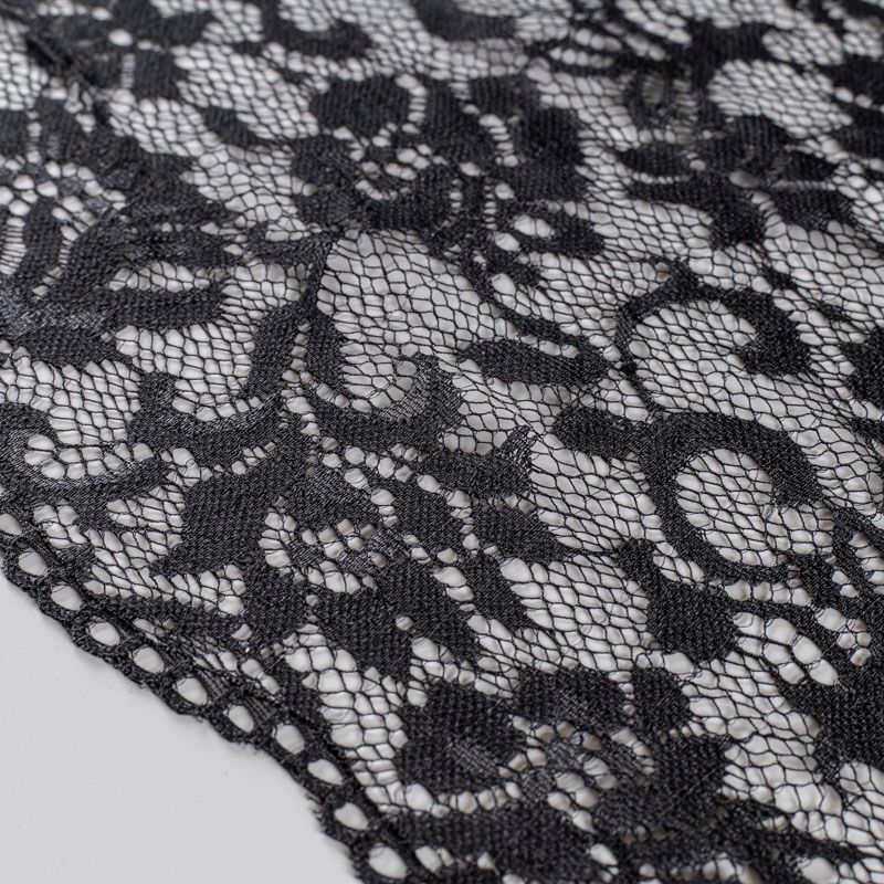 Эластичное кружево сочетает в себе мягкость, прочность и красоту, благодаря своей упругости оно долго не теряет первоначальную форму. Используется для пошива нижнего белья, а так же применяется как отделочный декор в одежде.