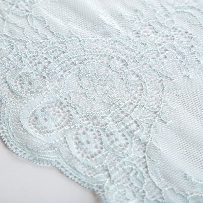 Эластичное кружево сочетает в себе мягкость, прочность и красоту, благодаря своей упругости оно долго не теряет первоначальную форму. Используется для пошива нижнего белья, а так же применяется как отделочный декор в одежде.