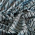 Итальяская качественная, красивая и приятная на ощупь лайкра белого цвета с принтом тай-дай и черной диагональной полоской. Поверхность ткани матовая и гладкая. Идеально облегает фигуру, тянется по двум направлениям, хорошо драпируется, отлично держит форму, устойчива к пилингу, долговечна и гигроскопична. Используется для пошива одежды для танцев, гимнастики, фигурного катания, для велоспорта, легкой атлетики и аэробики, фитнеса и других видов спорта, для купальников, женского белья, театральных, цирковых и эстрадных костюмов.