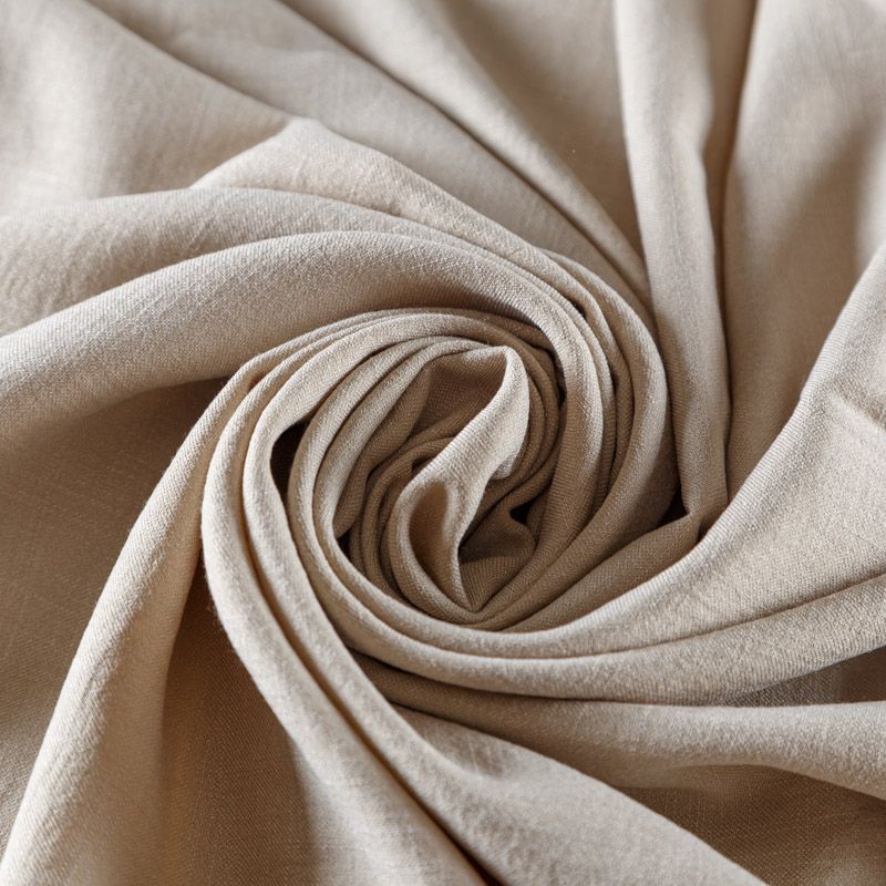 Мягкая, пластичная ткань с выразительной матовой рельефной поверхностью и полотняным переплетением, имитирующая лен, хорошо драпируется, тянется. Прекрасно подойдет для пошива брюк, шорт, юбок, платьев, сарафанов, жакетов, кардиганов.
