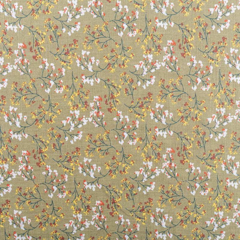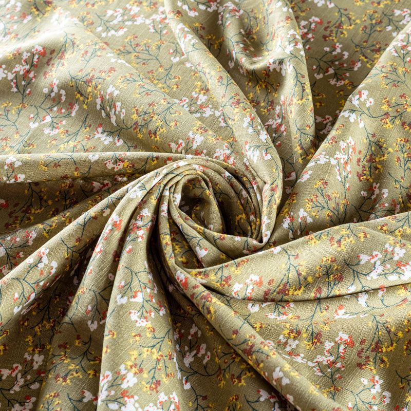Лен натуральный 035-01364 зеленый хаки принтованный