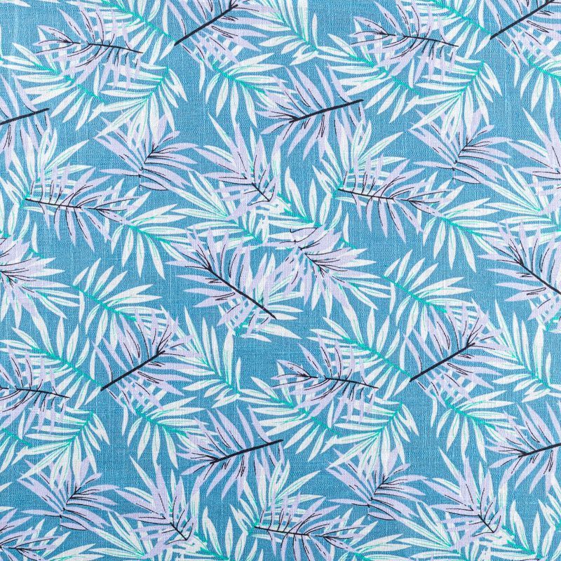 Лен натуральный 035-01366 темно-голубой принтованный