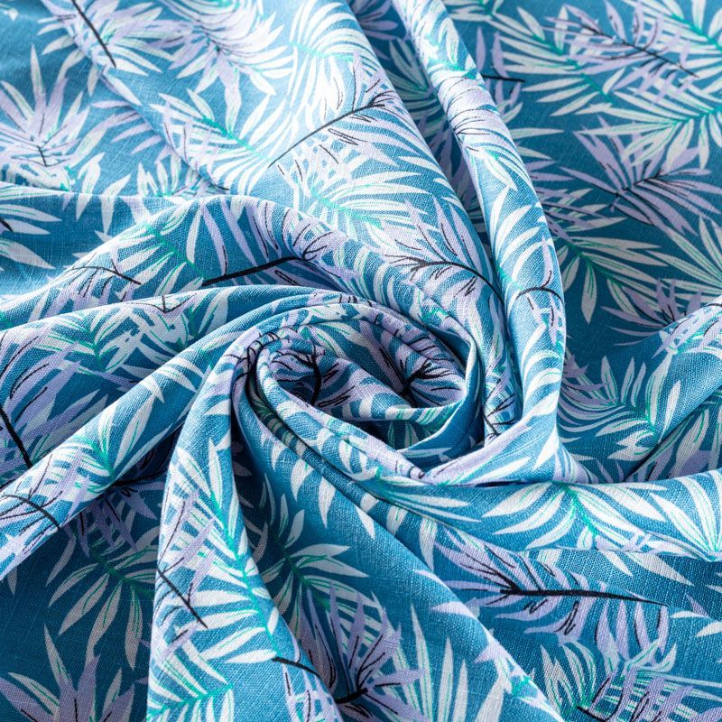 Льняная плательная ткань с добавлением вискозы темно-голубого цвета с растительным принтом. Материал прочный, с выразительной матовой рельефной поверхностью, полотняным плетением, хорошо держит форму, мягкий на ощупь, пластичный, отлично драпируется. Прекрасно подойдет для пошива летних платьев, сарафанов, юбок, рубашек, брюк и шорт.