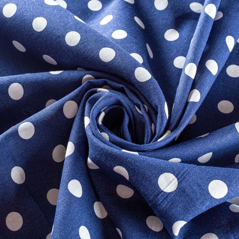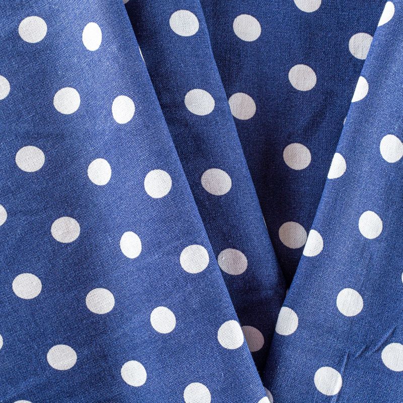 Льняная костюмно-плательная ткань темно-синего оттенка в белый горох. Ткань прочная и плотная, с выразительной матовой рельефной поверхностью и полотняным переплетением, отлично держит форму, комфортная в изделии. Стильный вариант для летних пальто, кардиганов, платьев, сарафанов, юбок, жакетов, брюк или шорт.