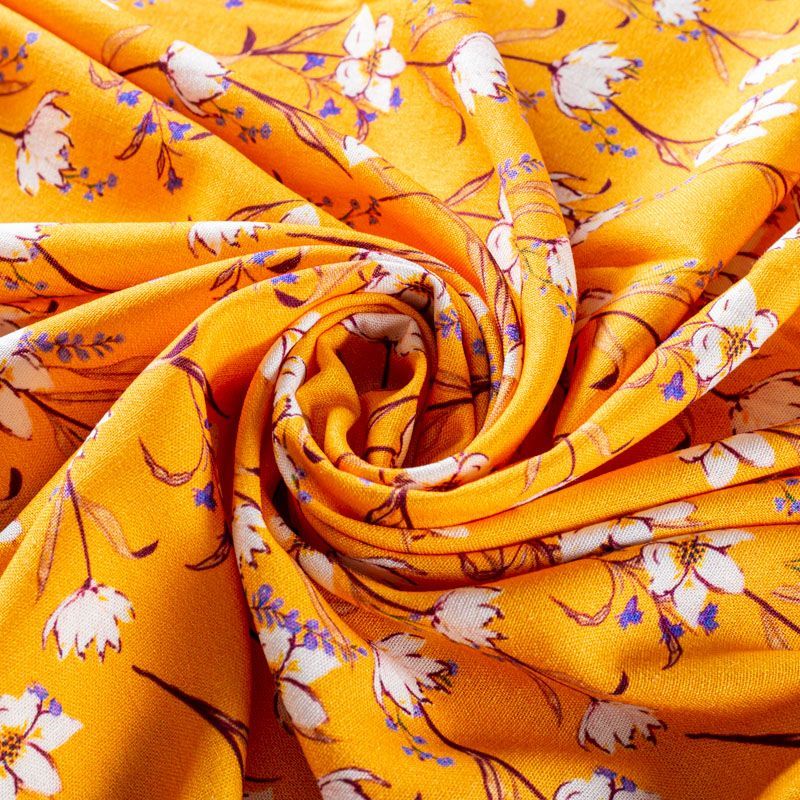 Лен натуральный 035-01578 шафрановый принтованный