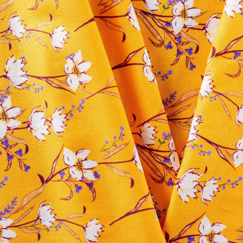 Льняная костюмно-плательная ткань желтого оттенка с милым цветочным принтом. Ткань прочная и плотная, с выразительной матовой рельефной поверхностью и полотняным переплетением, отлично держит форму, комфортная в изделии. Стильный вариант для летних пальто, кардиганов, платьев, сарафанов, юбок, жакетов, брюк или шорт.