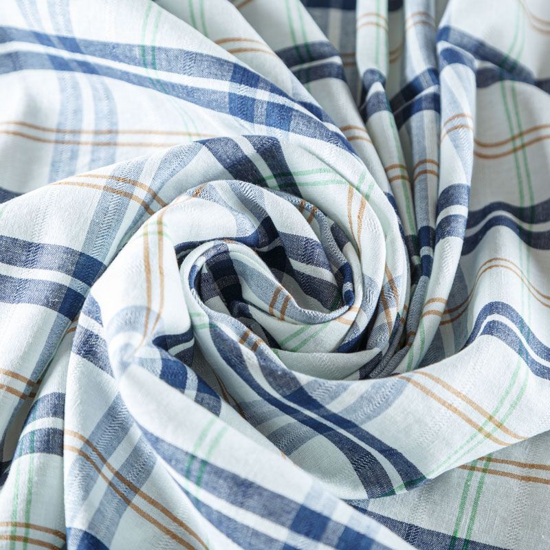 Льняная плательно-рубашечная ткань с добавлением полиэстера белого цвета с гоеметрическим принтом. Материал прочный, с выразительной матовой рельефной поверхностью, полотняным плетением, хорошо держит форму, мягкий на ощупь, пластичный, отлично драпируется. Прекрасно подойдет для пошива летних платьев, сарафанов, юбок, рубашек, брюк и шорт.