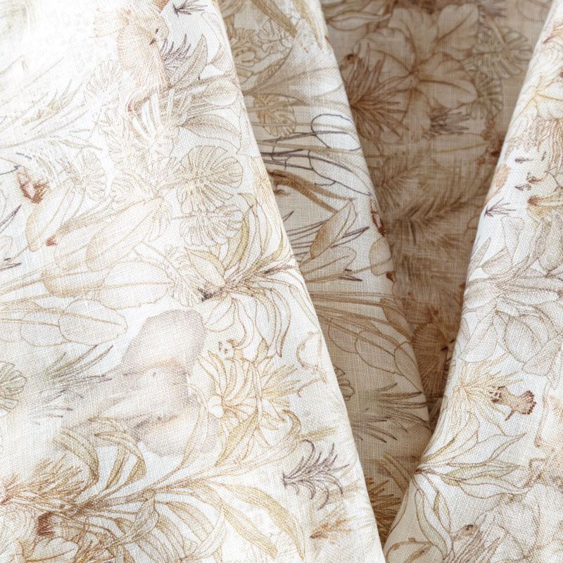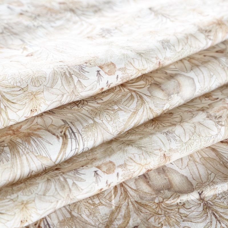 Итальянский плательно-рубашечный лен средней плотности с растительным принтом в бежево-коричневых оттенках. Ткань прочная, имеет матовую рельефную поверхность и полотняное переплетение, отлично держит форму, пластичная, комфортная в изделии. Отлично подойдет для пошива для летних костюмов, рубашек, туник, платьев, сарафанов, юбок, жакетов, брюк или шорт.