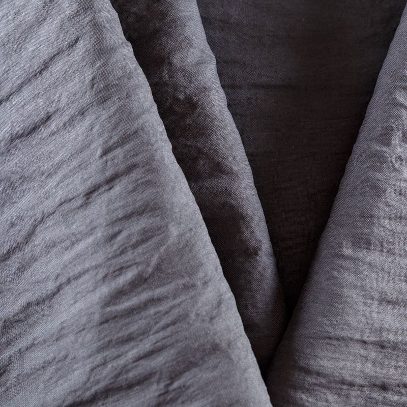 Фактурный итальянский жатый лен в сложном сером оттенке. Ткань благодаря фактуре не мнется, не светит, сухая, не струится, имеет смесовый состав и идеальную плотность, поэтому отлично подойдет как для платьев и сарафанов, так и для брюк, юбок, комбинезонов.