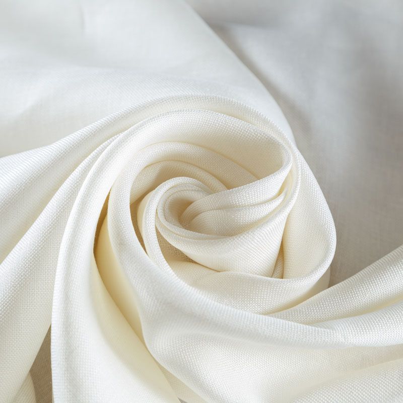 Итальянский костюмно-плательный лен молочного оттенка хорошей плотности. Ткань прочная, имееет на ощупь приятную поверхность, и визуально - выраженный рельеф и полотняное переплетение, держит форму, пластичная. Подойдет для пошива костюмов, брюк, шорт, юбок, платьев, сарафанов, топов, комбинезонов, жакетов, кардиганов.